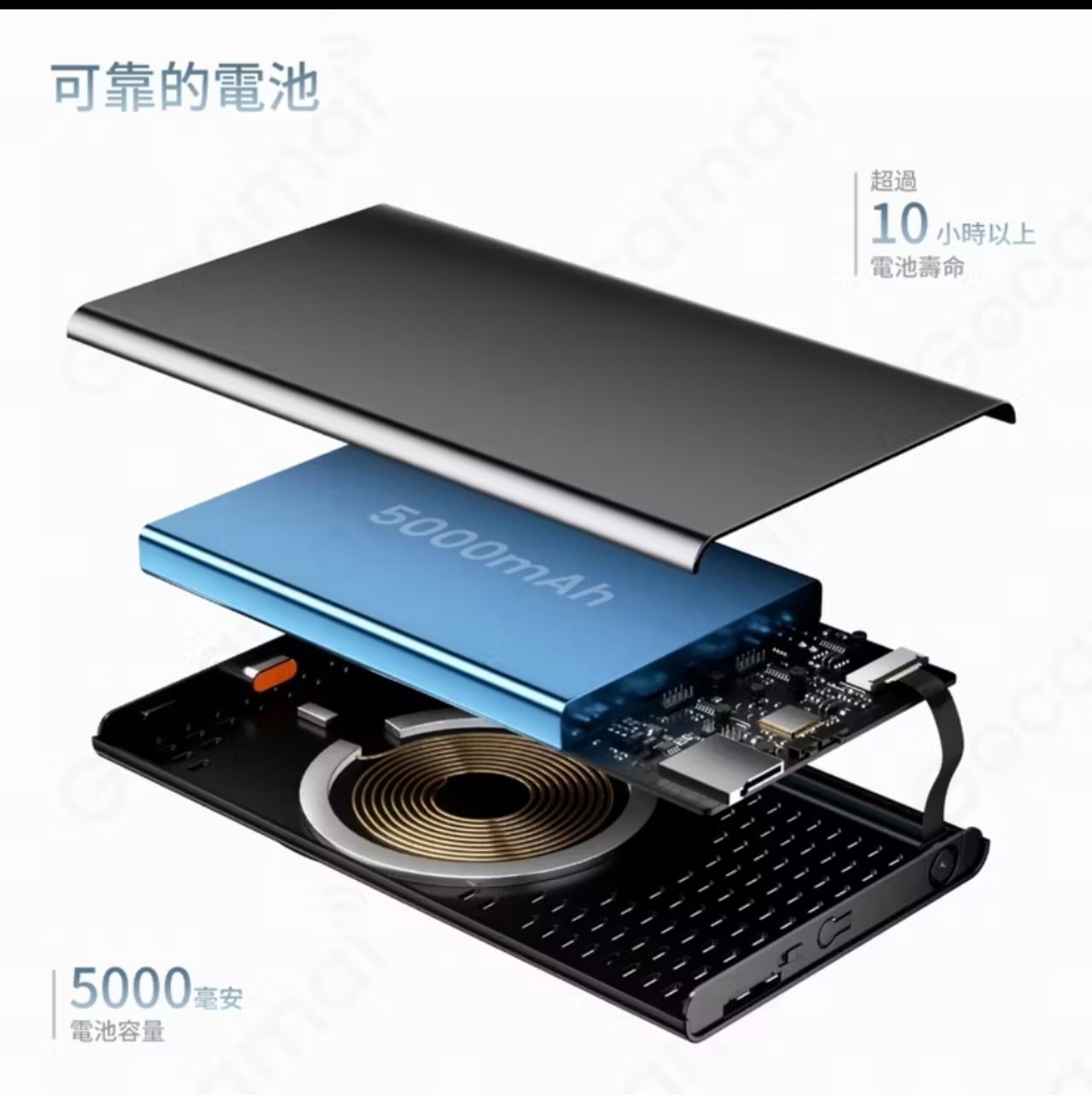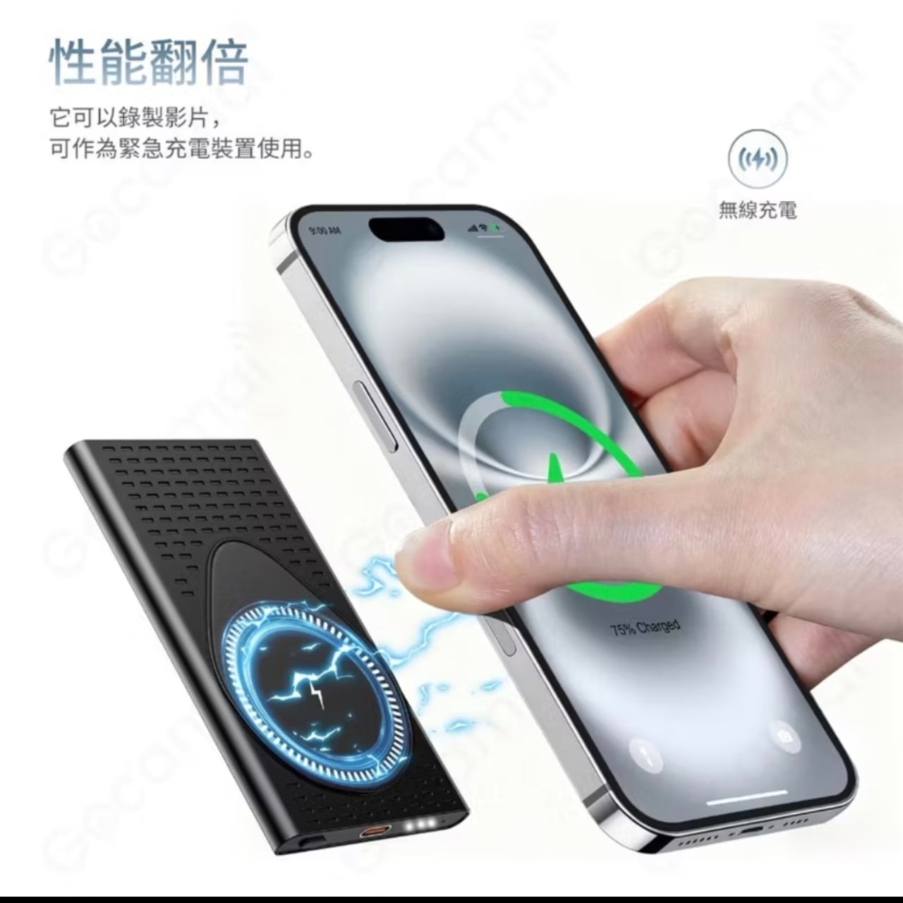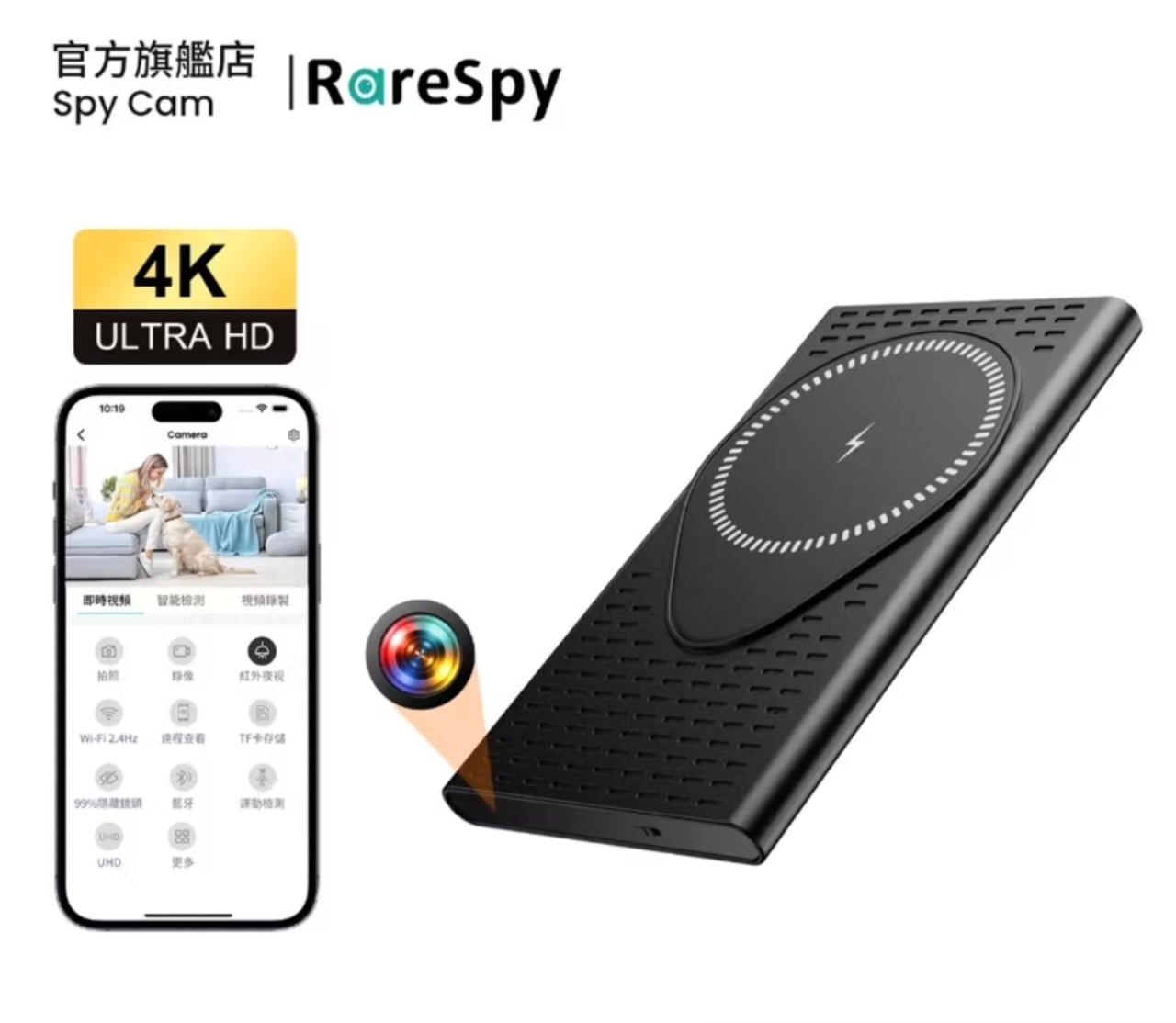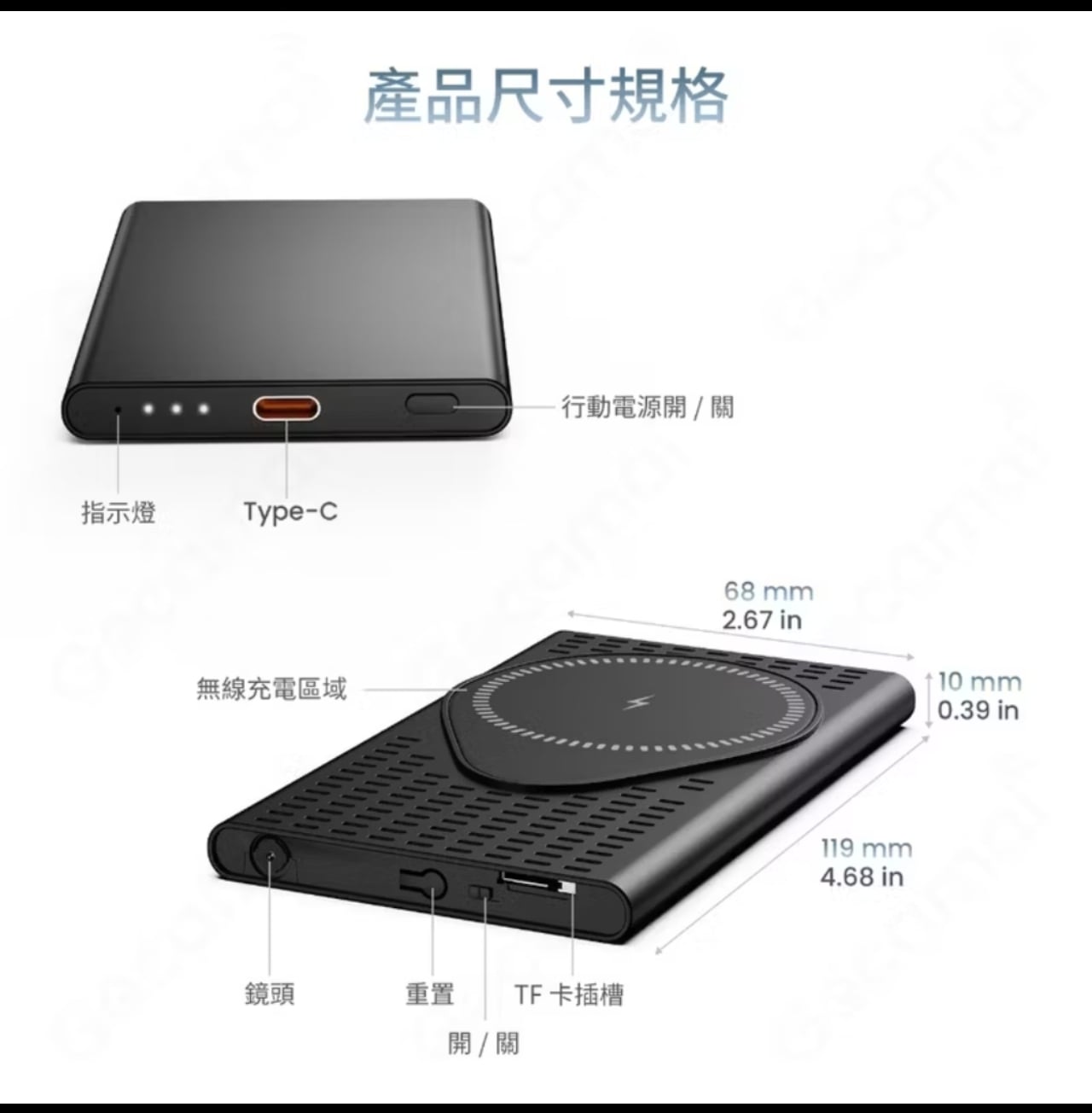 ✅ 電力與充電: 內建5000mAh大容量鋰電池,可持續錄影10小時以上,並支援無線充電功能,可同時為手機充電。
